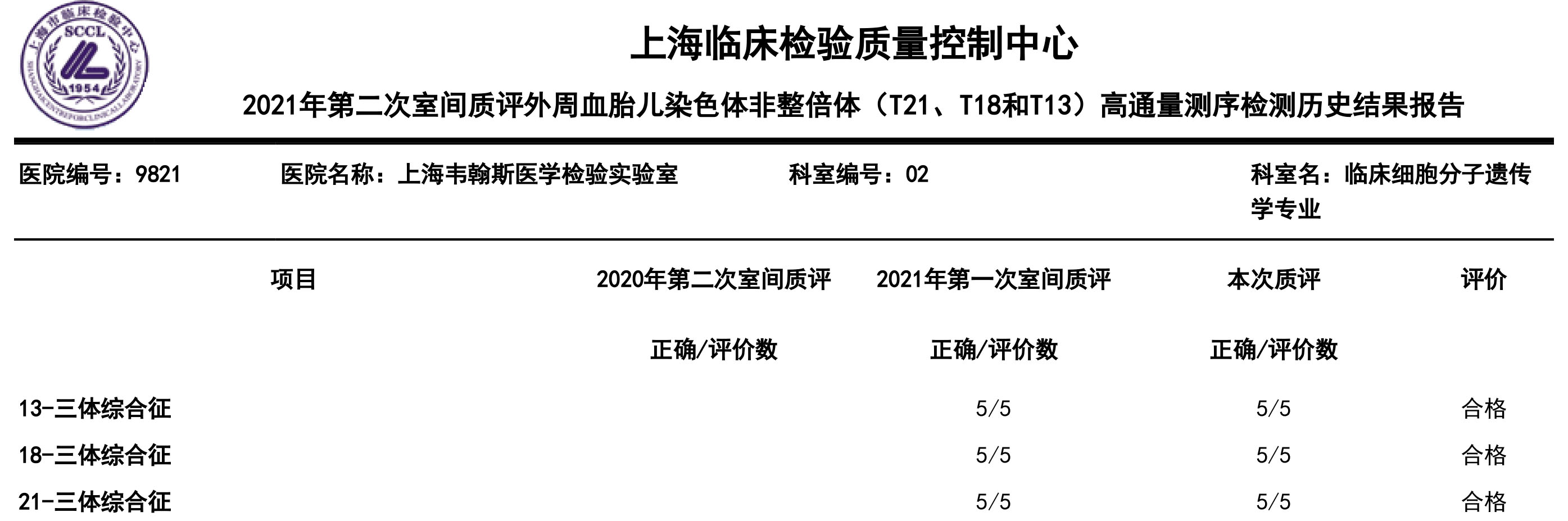 近日,上海市臨床檢驗(yàn)中心公布了2021年第二次室間質(zhì)評(píng)結(jié)果報(bào)告。上海韋翰斯參加了“外周血胎兒染色體非整倍體(T21、T18、T13)、地中海貧血基因分型、耳聾基因檢測(cè)(先天性、遺傳性、藥物性)”三個(gè)項(xiàng)目,全部滿(mǎn)分通過(guò)。本次佳績(jī)標(biāo)志著韋翰斯生物的實(shí)驗(yàn)室檢測(cè)、數(shù)據(jù)分析等各個(gè)環(huán)節(jié)始終保持著高穩(wěn)定性及先進(jìn)水平。