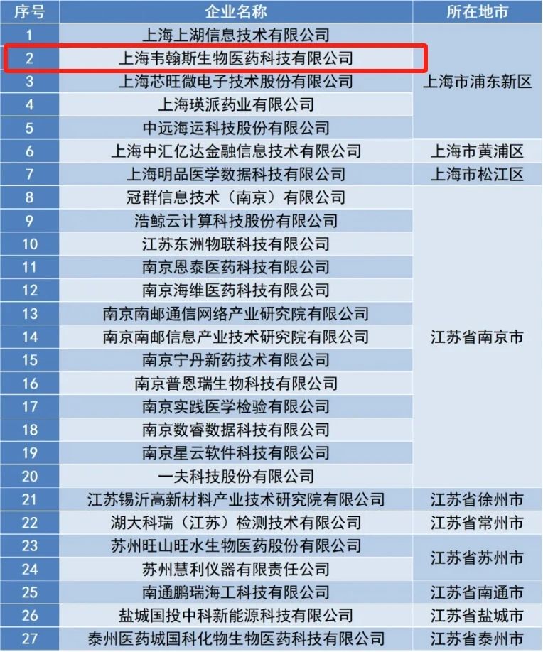 為提升長三角地區(qū)產(chǎn)業(yè)自主創(chuàng)新水平,促進研發(fā)服務產(chǎn)業(yè)發(fā)展,增強產(chǎn)業(yè)技術(shù)供給能力,推動創(chuàng)新要素在更大范圍內(nèi)充分流動,根據(jù)《關于組織申報2024年度長三角國創(chuàng)中心研發(fā)型企業(yè)的通知》,經(jīng)企業(yè)申報、資格初篩、專家評審、現(xiàn)場交流、網(wǎng)上公示等程序,現(xiàn)確定上海韋翰斯生物醫(yī)藥科技有限公司等27家企業(yè)入選2024年度長三角創(chuàng)新研發(fā)型企業(yè)(以下簡稱“研發(fā)型企業(yè)”),詳見下圖。